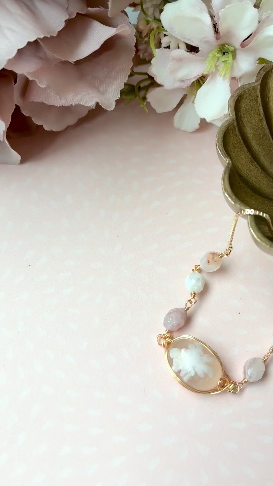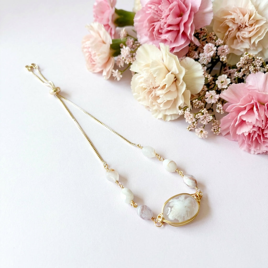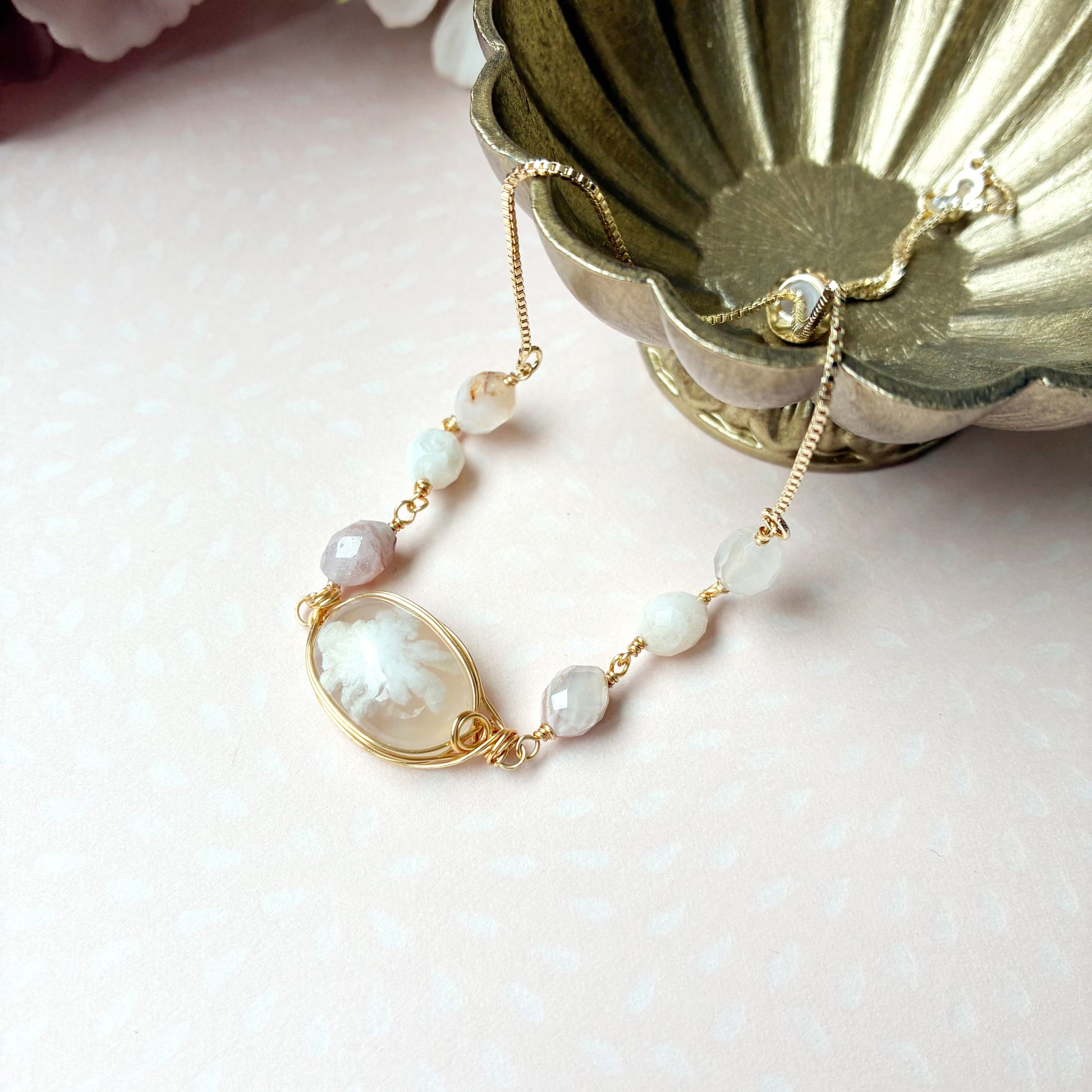 送料無料【✦14kgf金属アレルギー対応✦】天然石 桜の季節限定・:*チェリーブロッサムアゲートのブレスレット