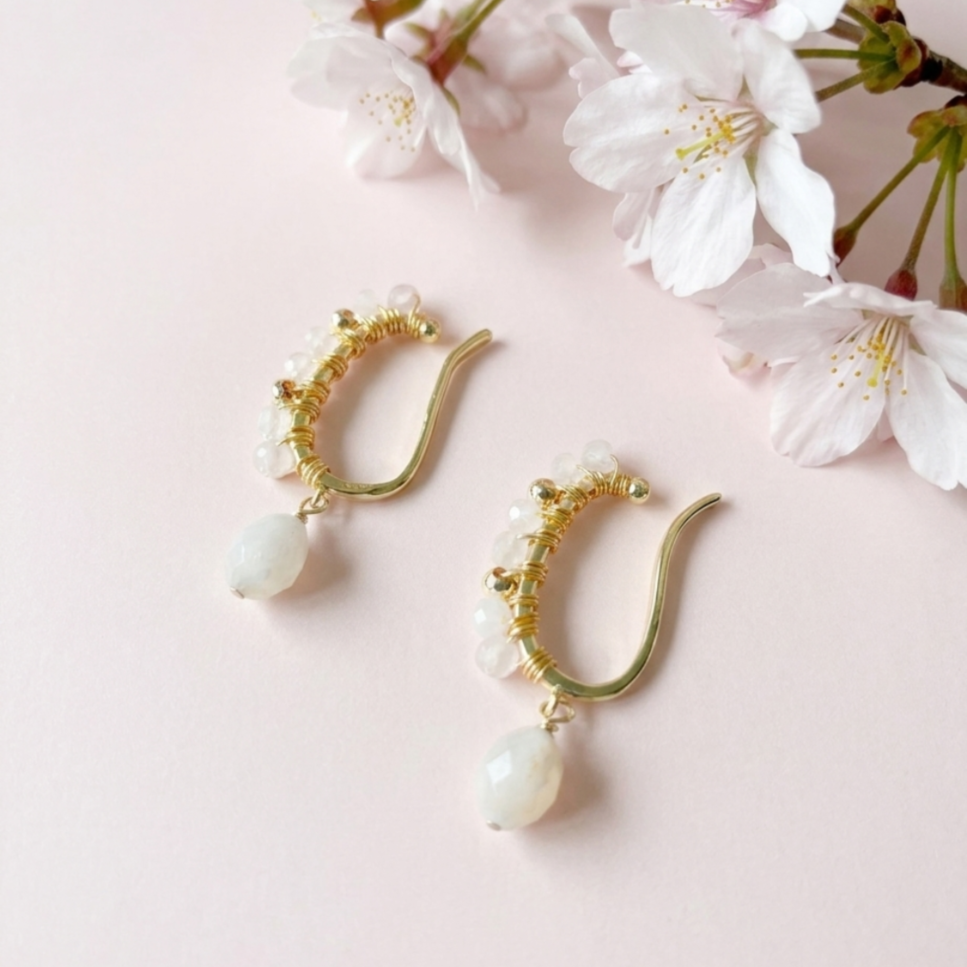 【★送料無料★】【✦14kgf金属アレ対応✦】天然石 桜の季節限定・:*チェリーブロッサムアゲートのイヤーカフ