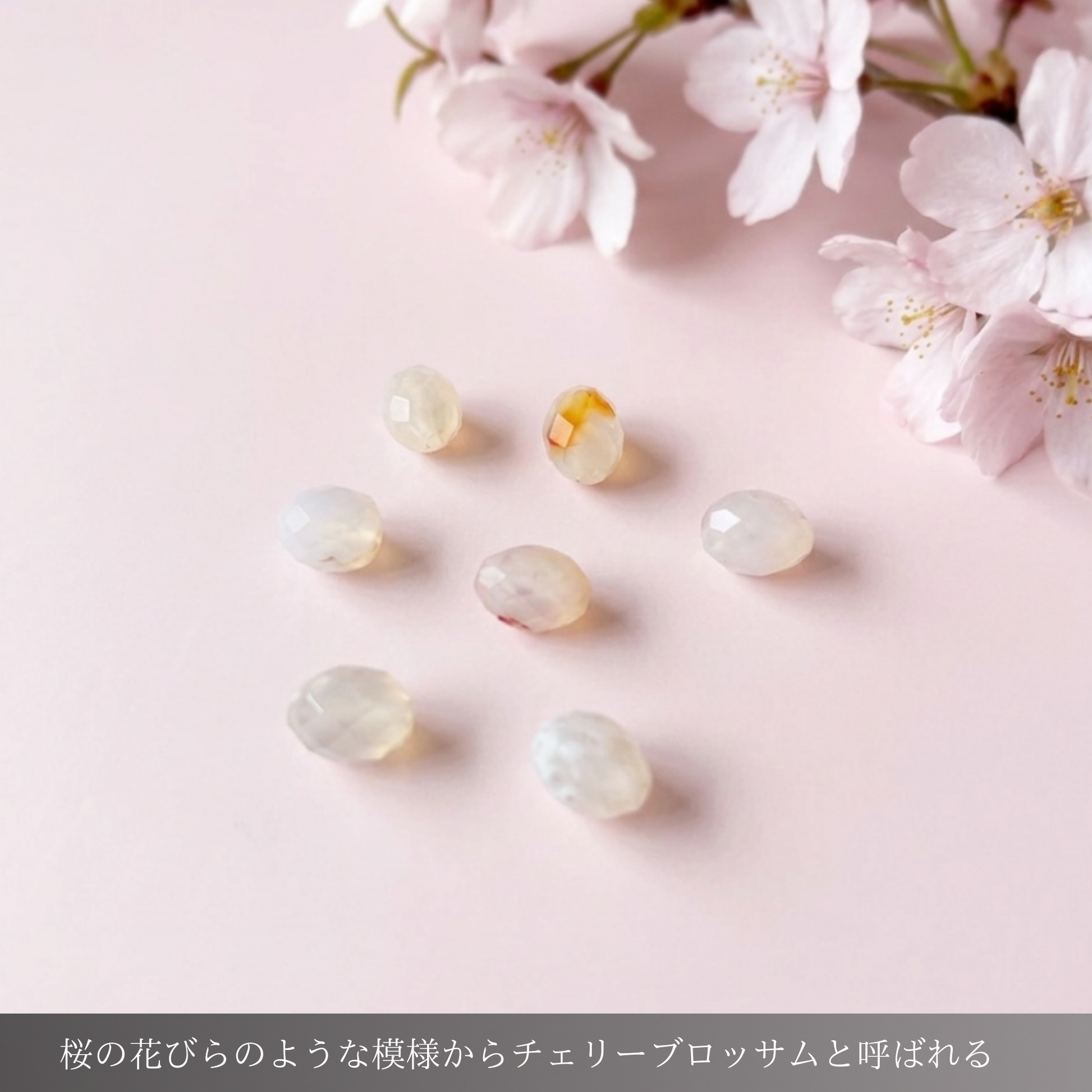 本物の桜の花びらが舞い落ちたような、幻想的な模様を持つ天然石です