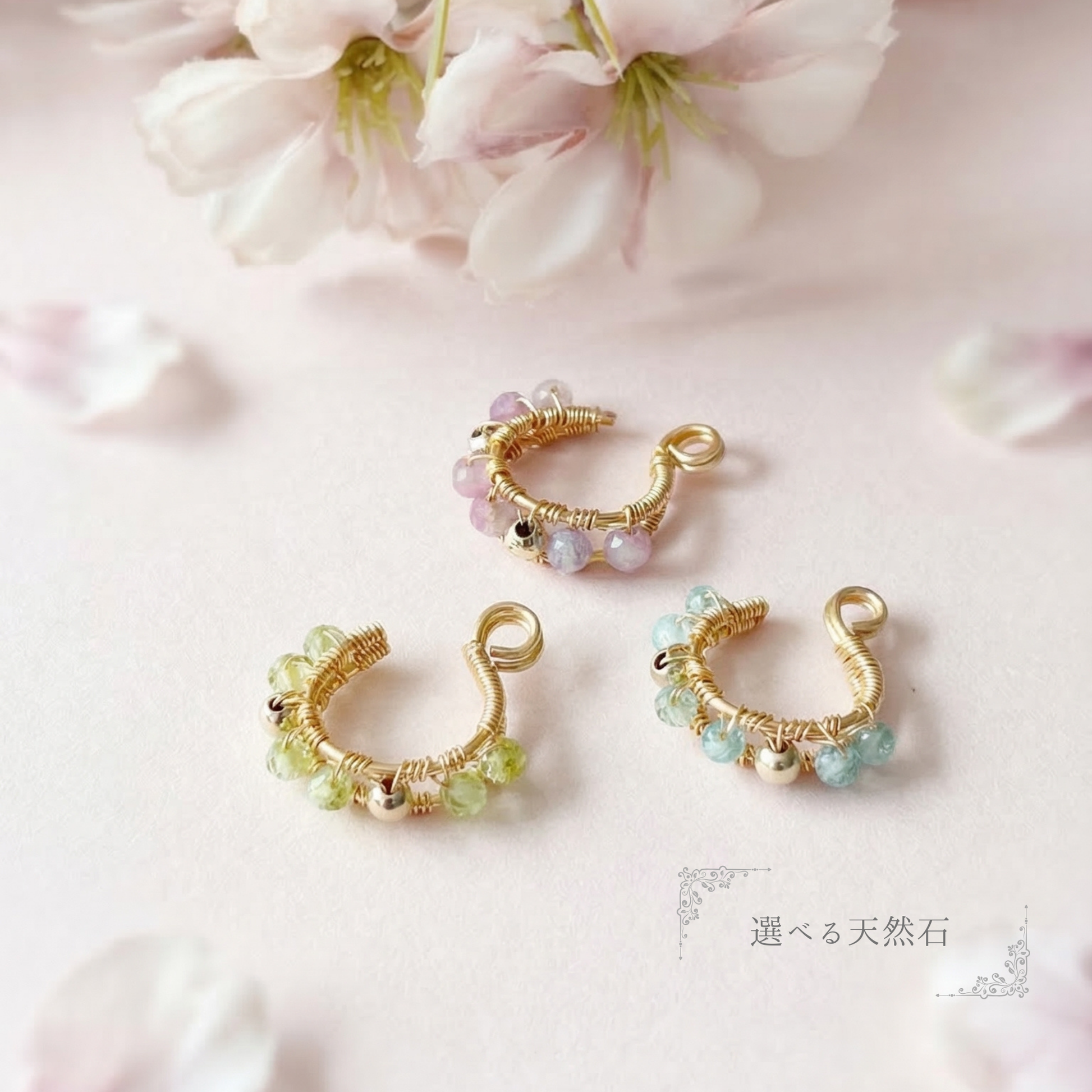 【14kgf金属アレルギー対応】〜選べる天然石〜アパタイトのイヤーカフ