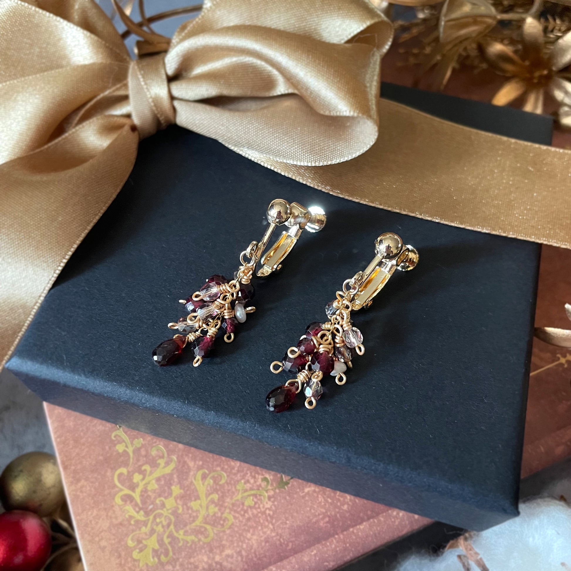 【★送料無料★】〜1月の誕生石〜冬に艶めくガーネットのシャンデリアイヤリング 天然石【14kgf】