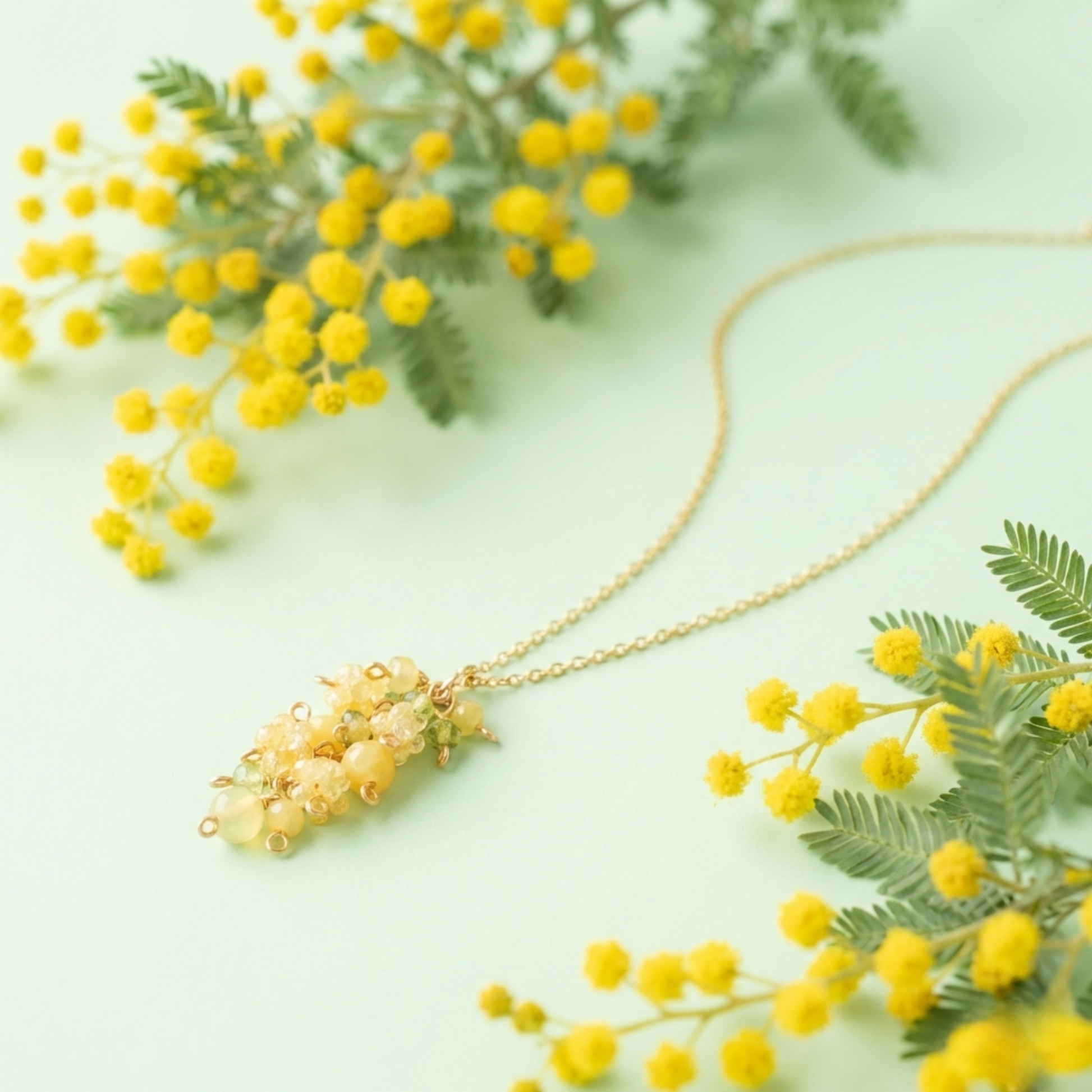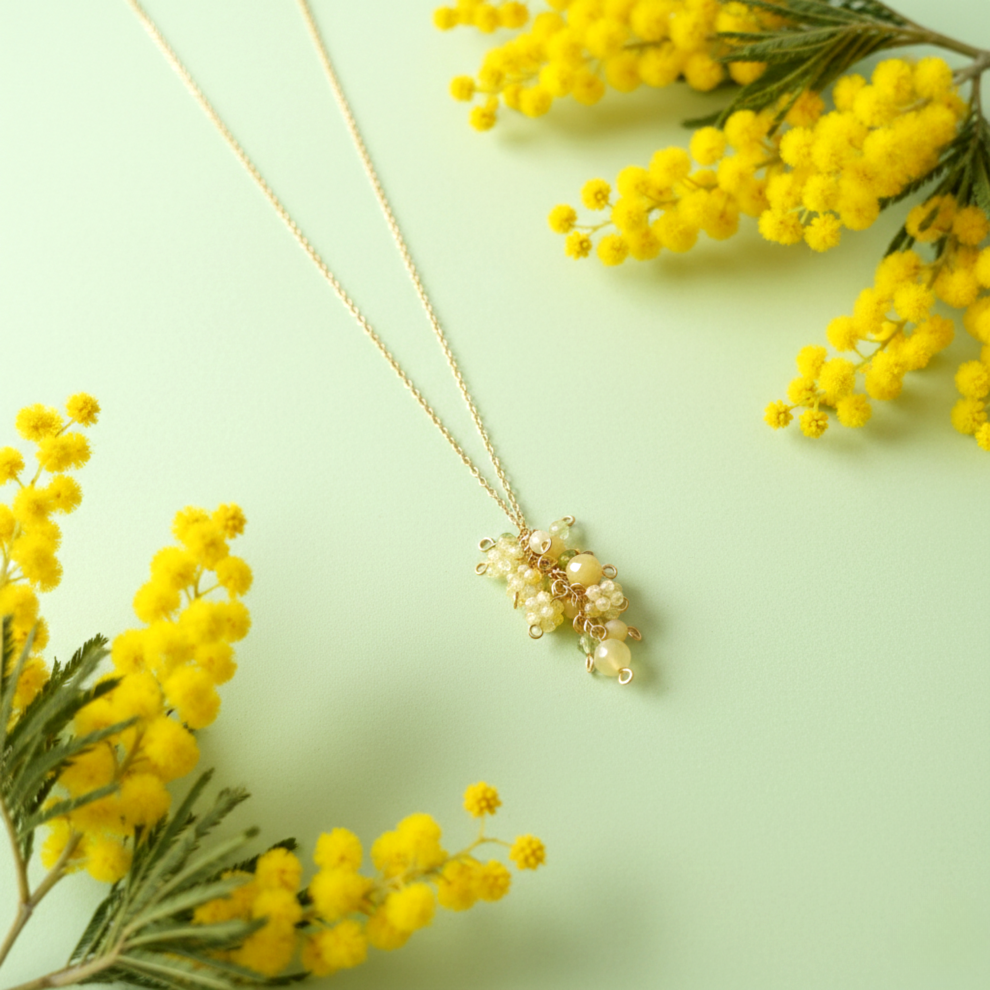 ふわふわ可愛らしいミモザをイメージしたネックレス