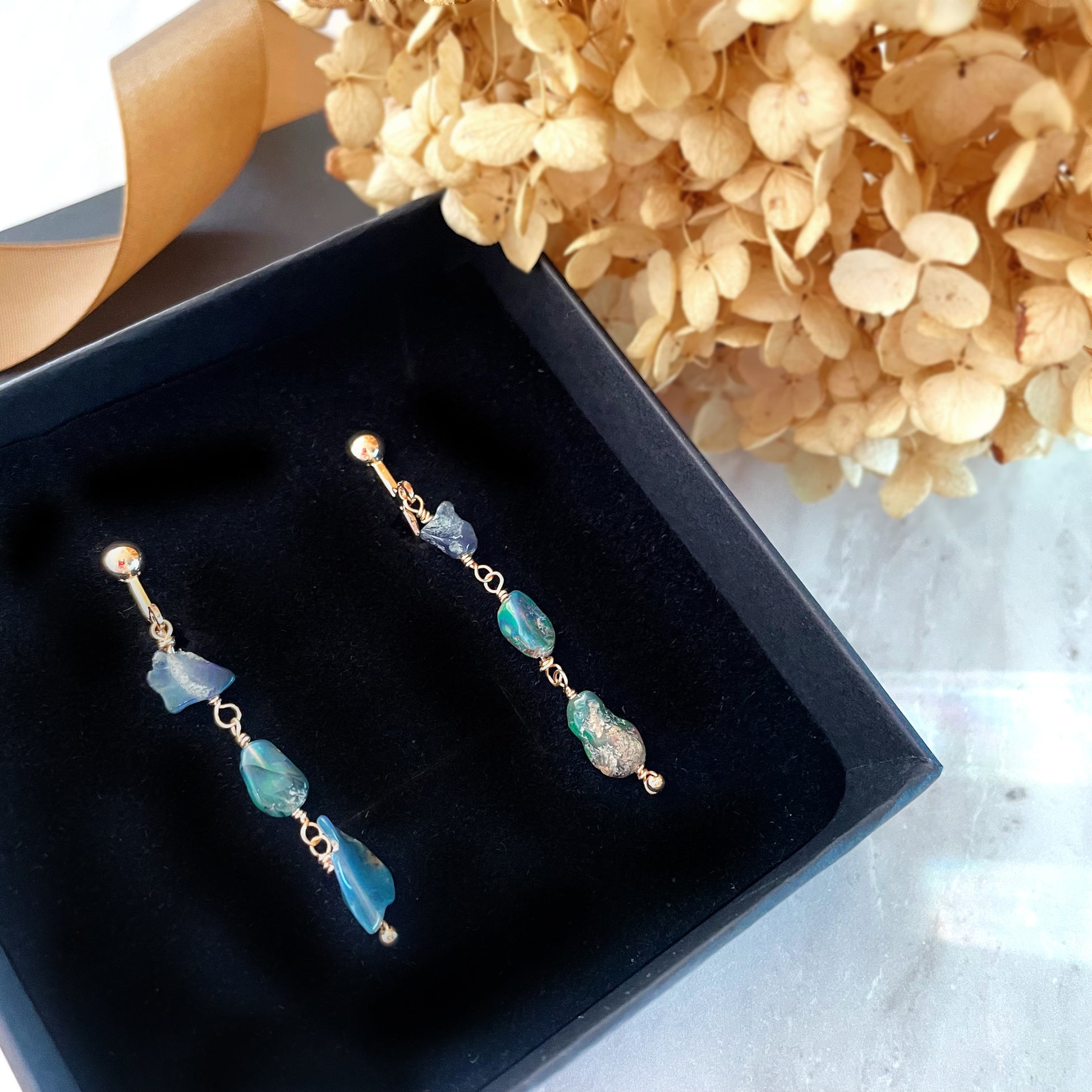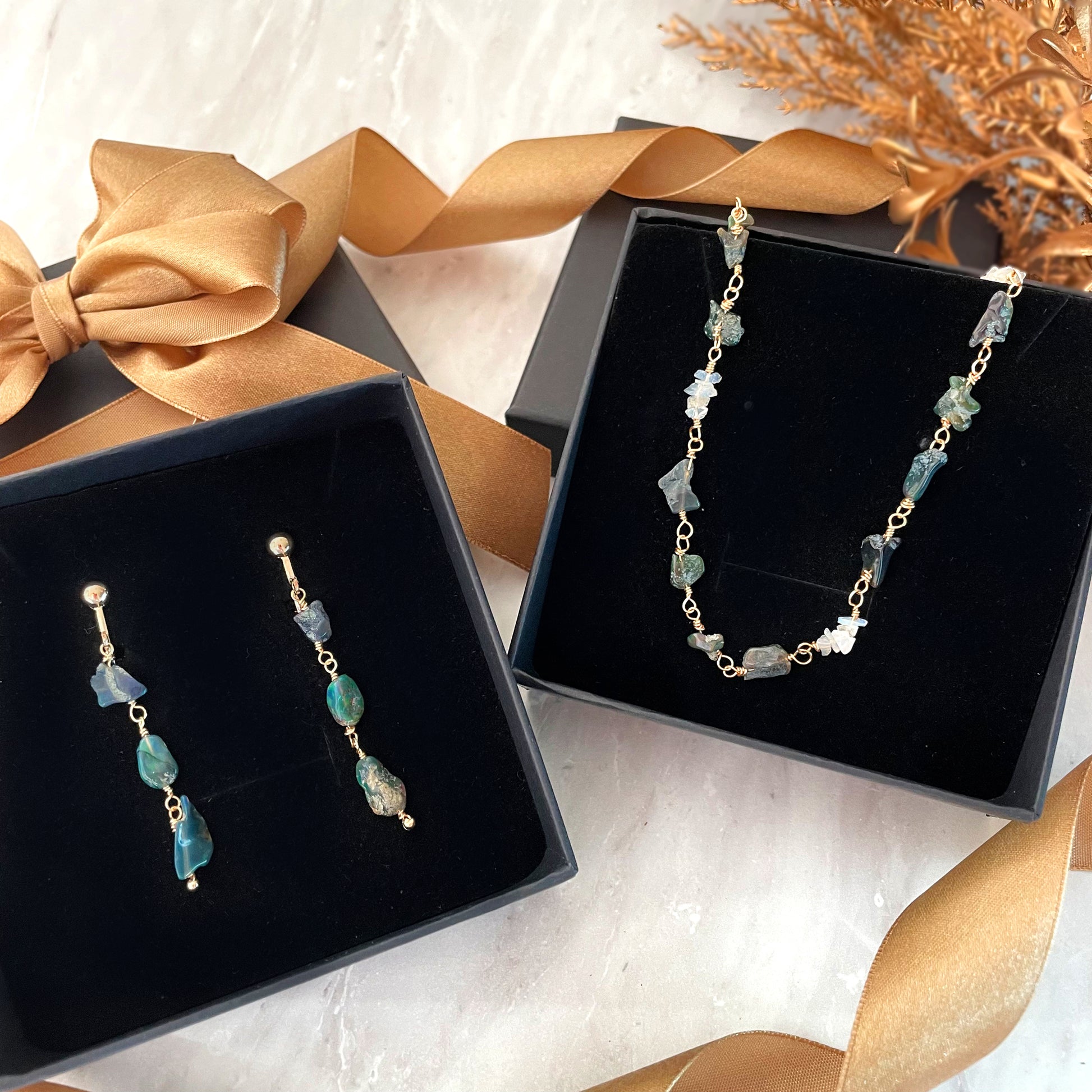 【★送料無料★】【14kgf金属アレルギー対応】10月の誕生石ブルーカラーオパールのセットアクセサリー