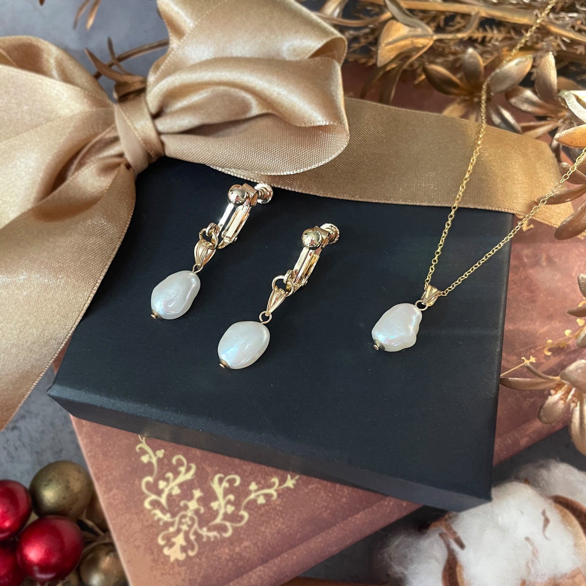 【淡水パールが輝く一粒イヤリングとネックレス】