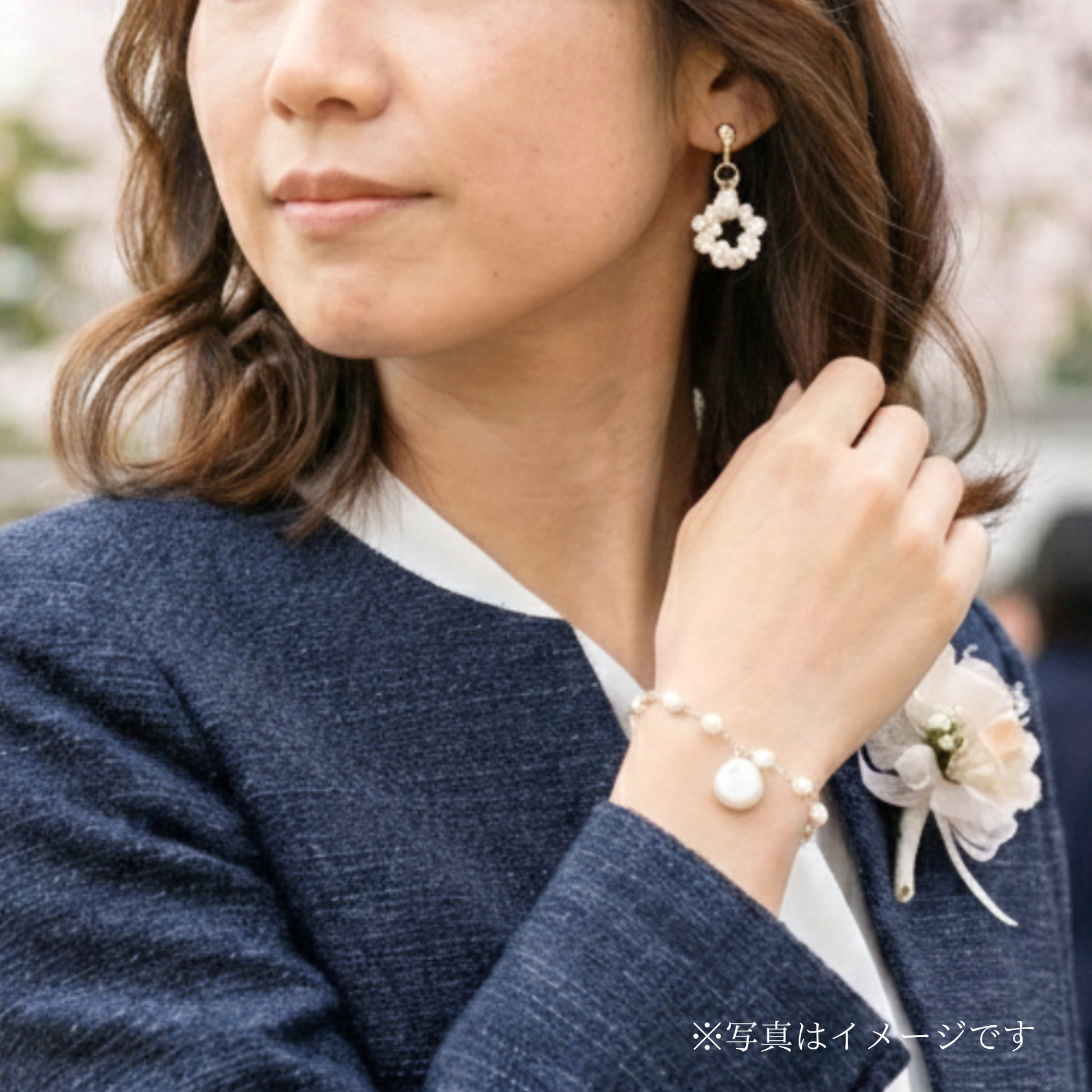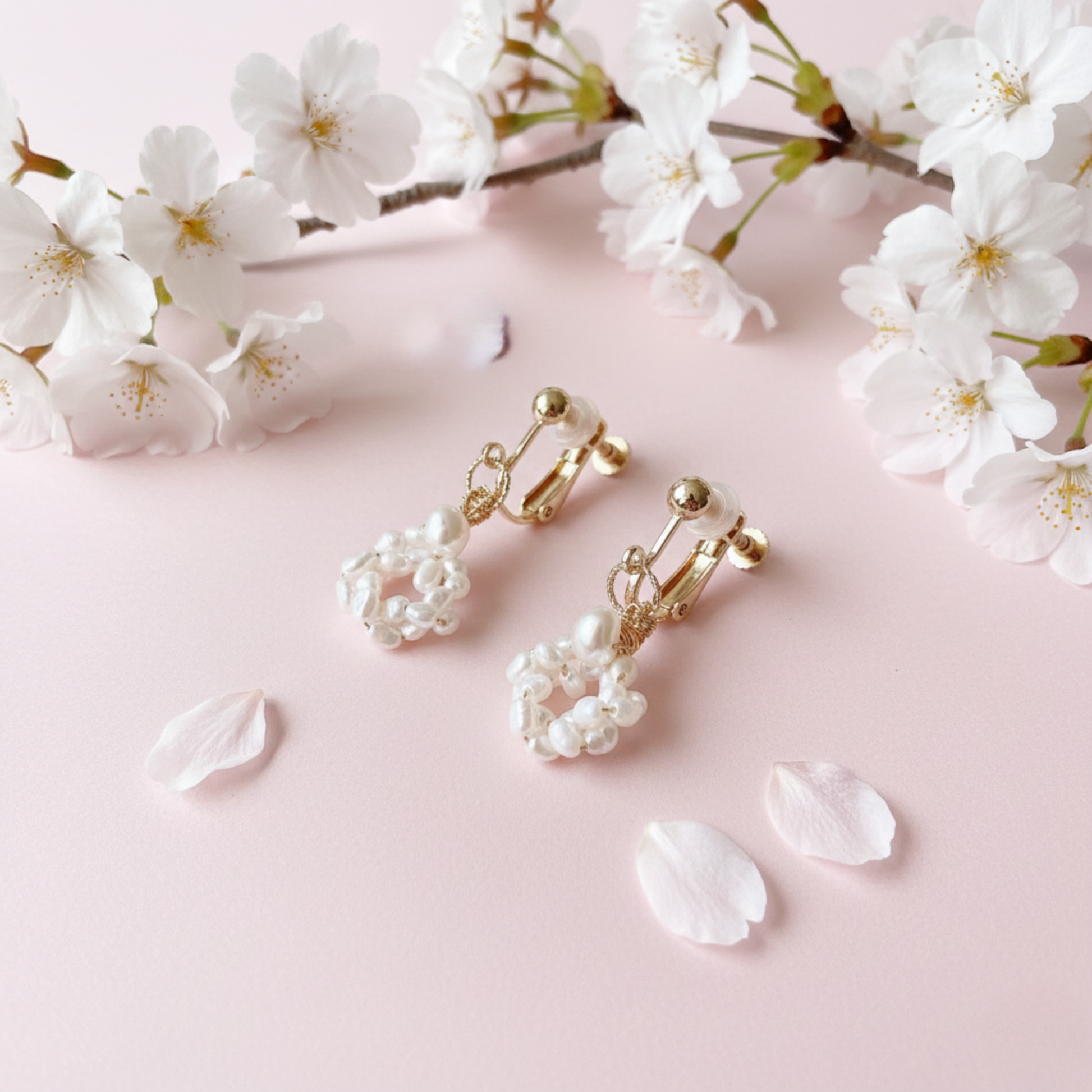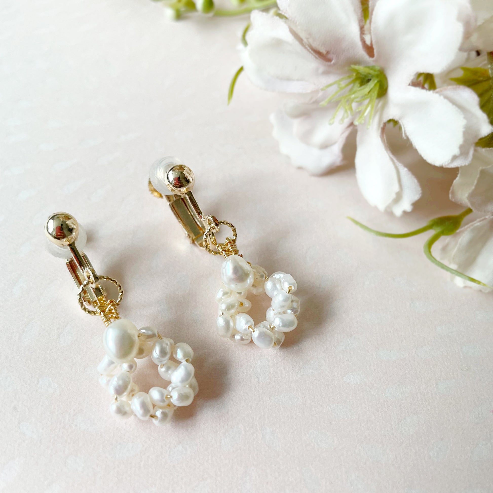 【★送料無料★】【✦14kgf金属アレルギー対応✦】 〜6月の誕生石〜 ふわふわリースのような淡水パールのイヤリング