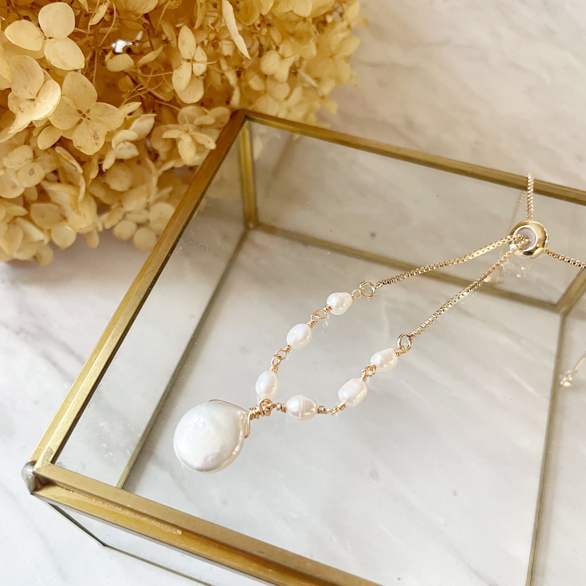 大きな淡水パールがお洋服の主役になるブレスレット